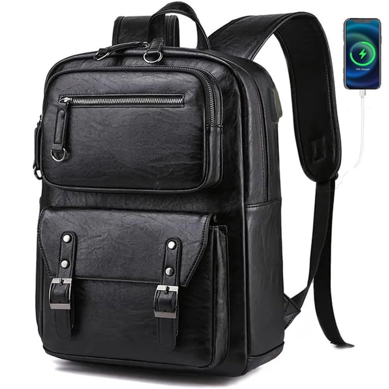 CHAO RAN Leather Backpack For Men Business Laptop Backpack Waterproof Travel College Backpack Daily Work Bags