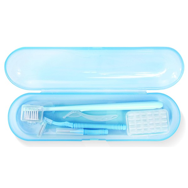 CHAOMI Orthodontic Dental Care Kit – Features Orthodontic Toothbrush, 2 Interdental Brushes, Ortho Wax & Applicator Scraper Kit, Transparent Carrying Case for Daily Travel Use(BLUE)