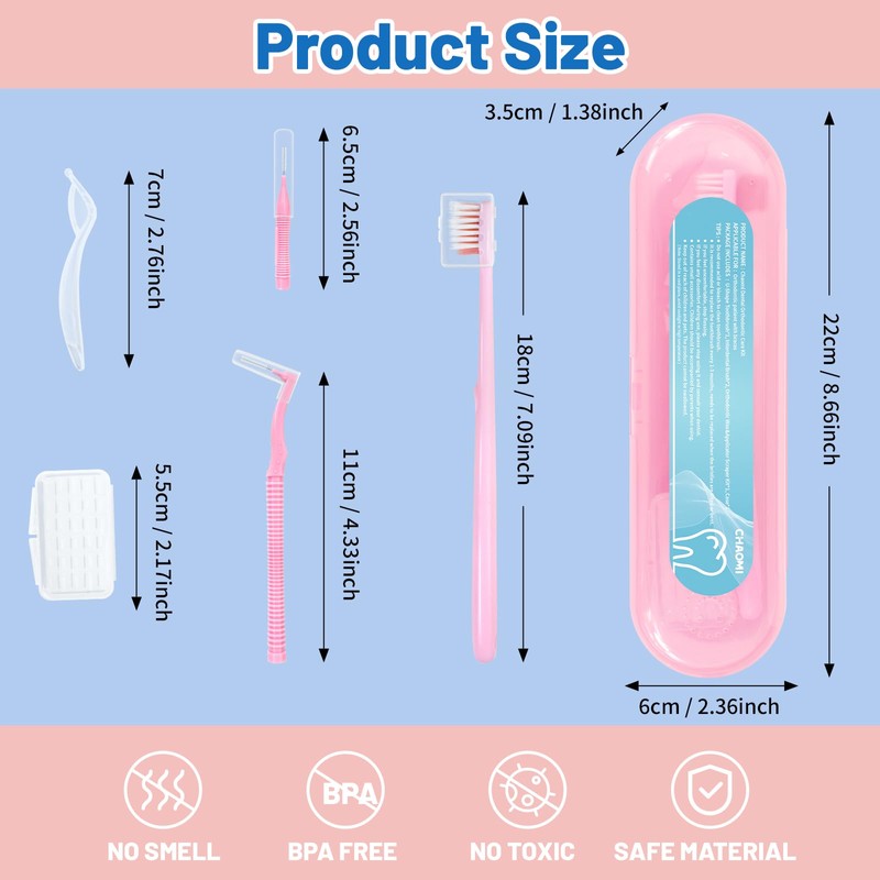 - Oral Care Kit: 1×Blue Transparent case, 1×V-shape toothbrush, 2×Interdental toothbrush, 1×Orthodontic wax & Applicator scraper. Fully satisfies your daily needs. You'll save money by purchasing a kit instead of buying each component separately