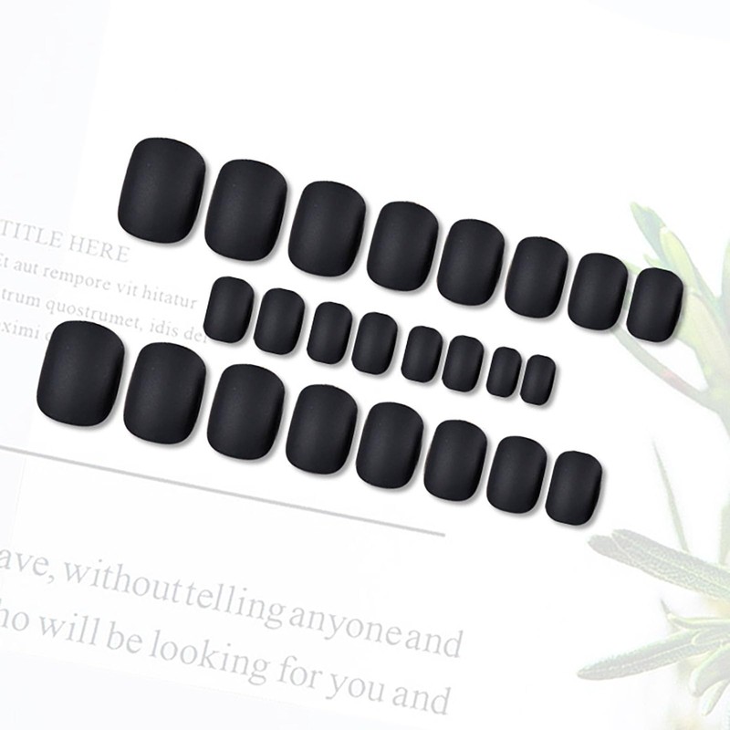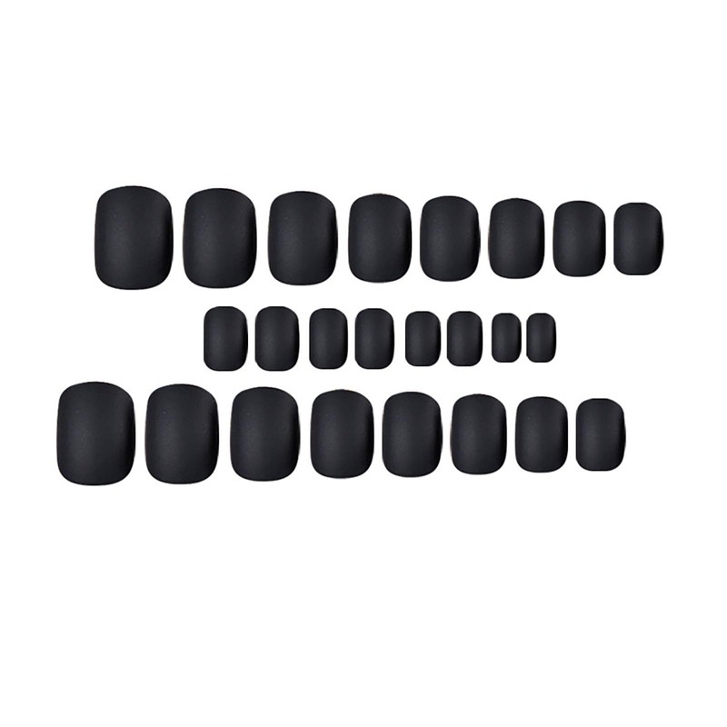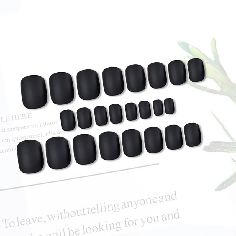 CHAONENG 24pc Black Matte Press-on Nails Kit with Glue, Tabs, File & 12 Sizes
