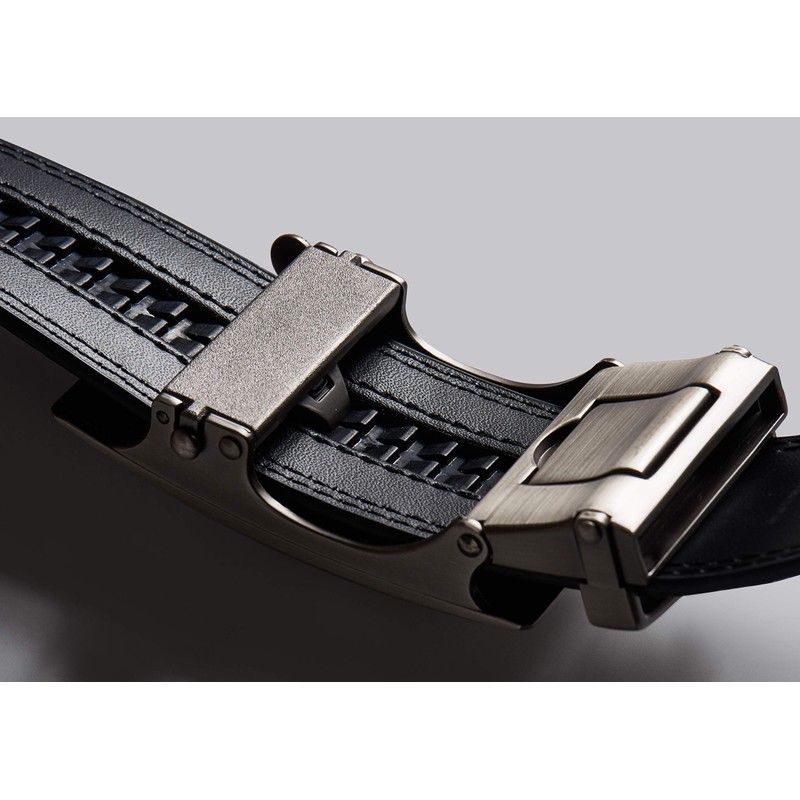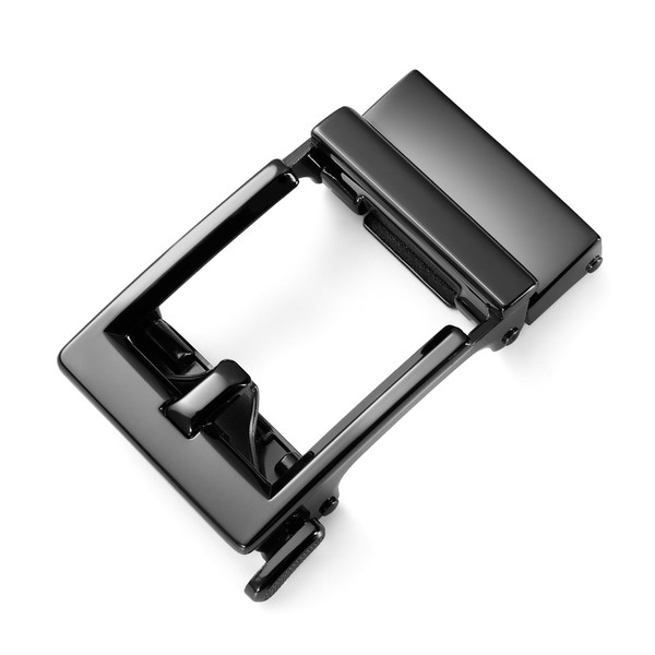 - EASY RATCHETING BELT BUCKLE - Just slide the leather dress belt in the ratchet buckle and the ratchet belt auto-locks. Lift the automatic buckle up or push the ratchet lever to release. Simple, smooth and sleek!