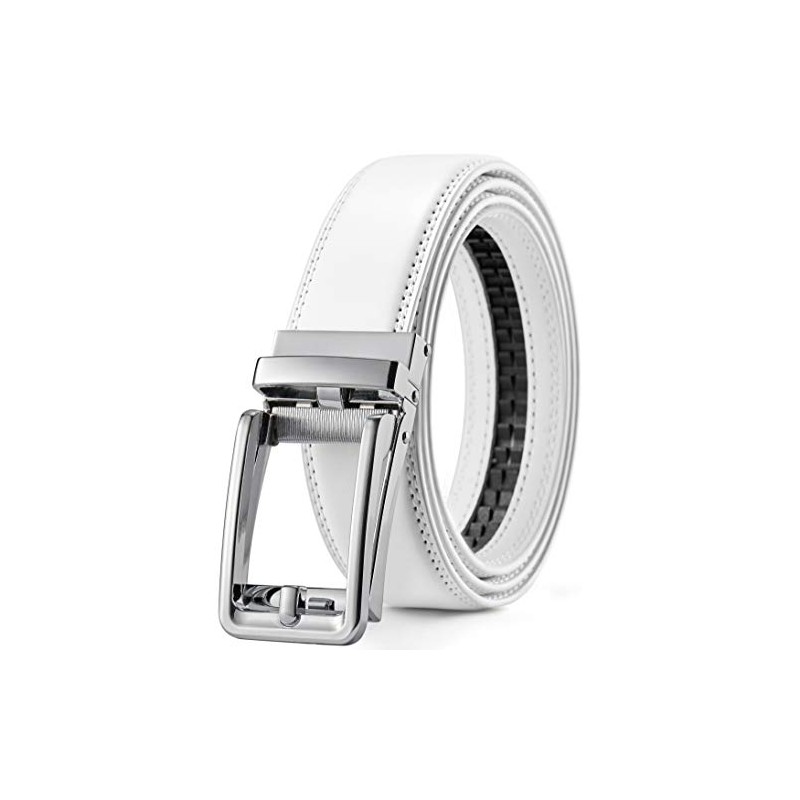Just slide the inch waist mens belt into the buckle and pull the belt through, the buckle simply automatic locks tightly. To release the ratchet belts leather, gently push the lever on the side and the lock will snap.