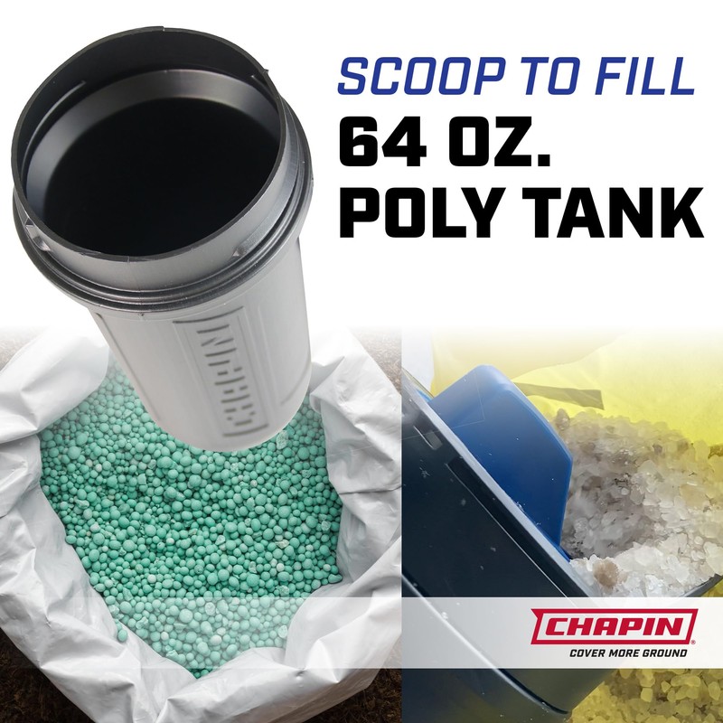 - 64-OUNCE BOTTLE: high-capacity poly bottle with a wide opening and easy screw top, quickly remove the lid to add your preferred seed, salt, fertilizer, etc. and simply screw back into place