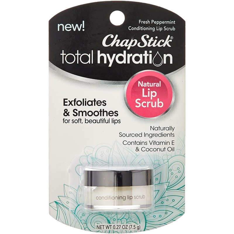 • Includes one 027-ounce jar of ChapStick Total Hydration Conditioning Lip Scrub in a sealed plastic blister card