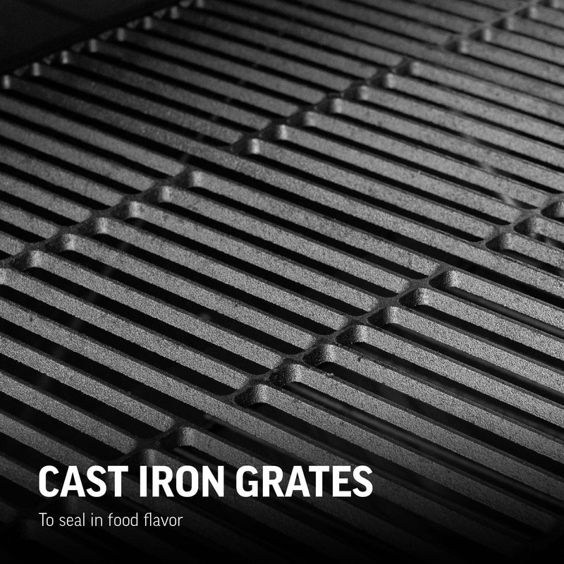 - LARGE COOKING AREA - 250 square inch grilling area with thick cast iron cooking grates, can cook up to 12 burgers at once