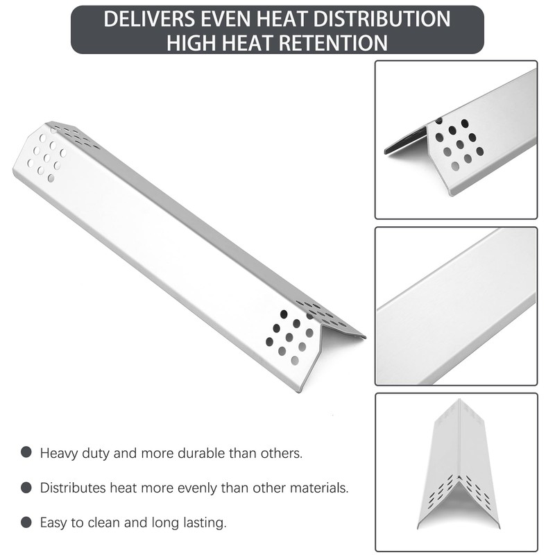 • 【UPGRADED THICKER AND HEAVIER THAN OTHERS】 You will get the NXR heat plates grill accessories that are made of solid stainless steel.【DELIVERS EVEN HEAT DISTRIBUTION, HIGH HEAT RETENTION AND COOK FOOD FAST 】 NXR grill parts heat shields heavy duty and more durable than others. retaining and transferring heat, perfect for searing and locking. distributes heat more evenly than other materials, long lasting. (Not like others stainless steel wrapped around tradition steel)