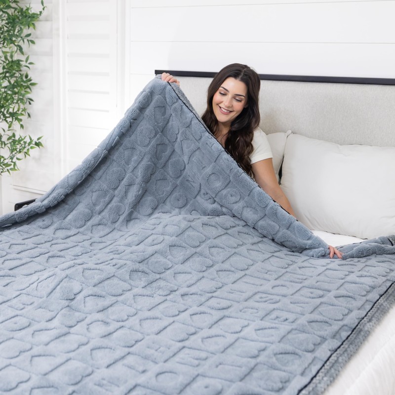 Charcoal Gray Luxury Sherpa-Knit Blanket – 60x80 Oversized Throw, Heart Texture, Ultra-Soft & Gift Ready