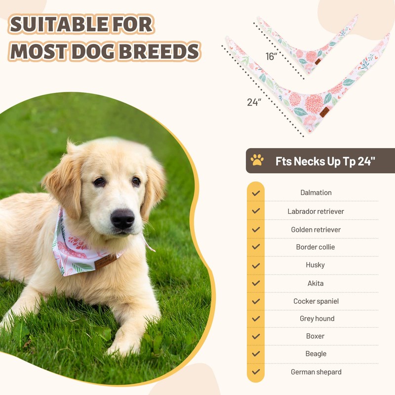 Charcy Dog Bandanas 4 Pack - Fall Bandanas for Boy & Girl, Adjustable Dog Scarf, Durable, Unique Design - Colorful Flower Large