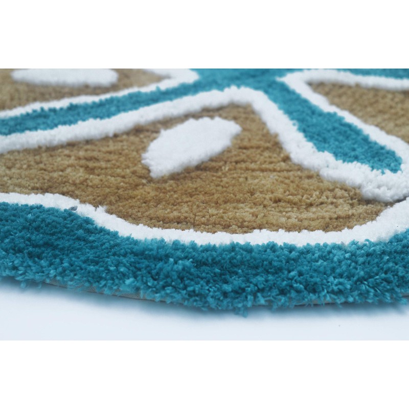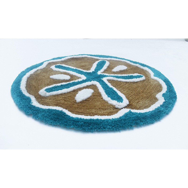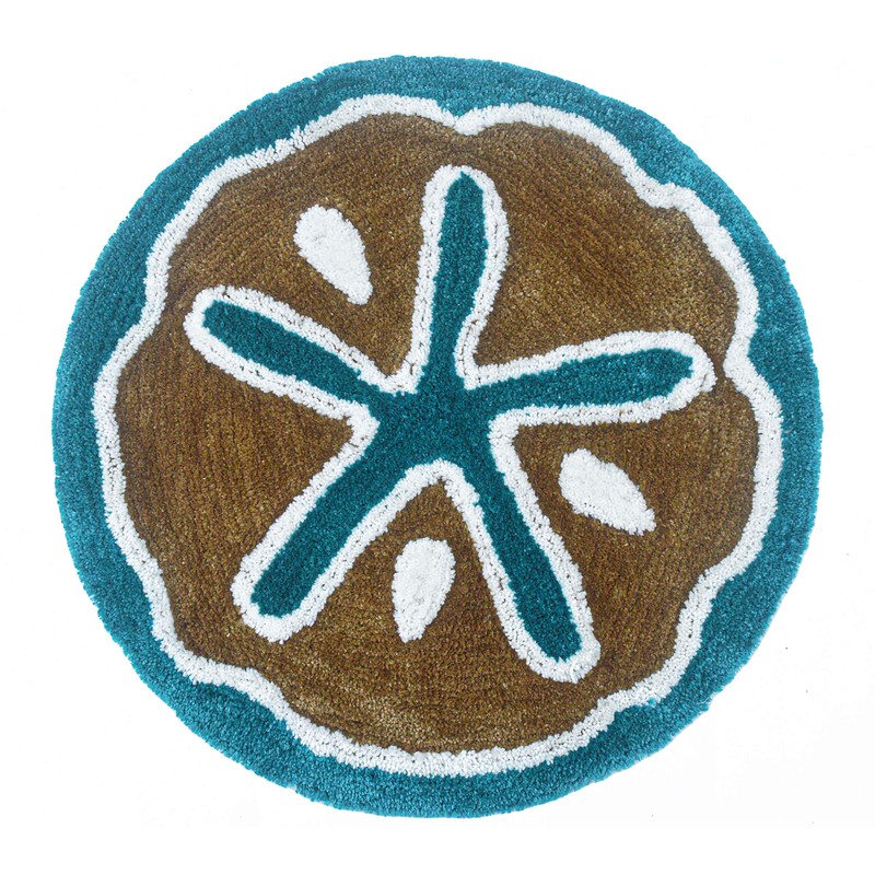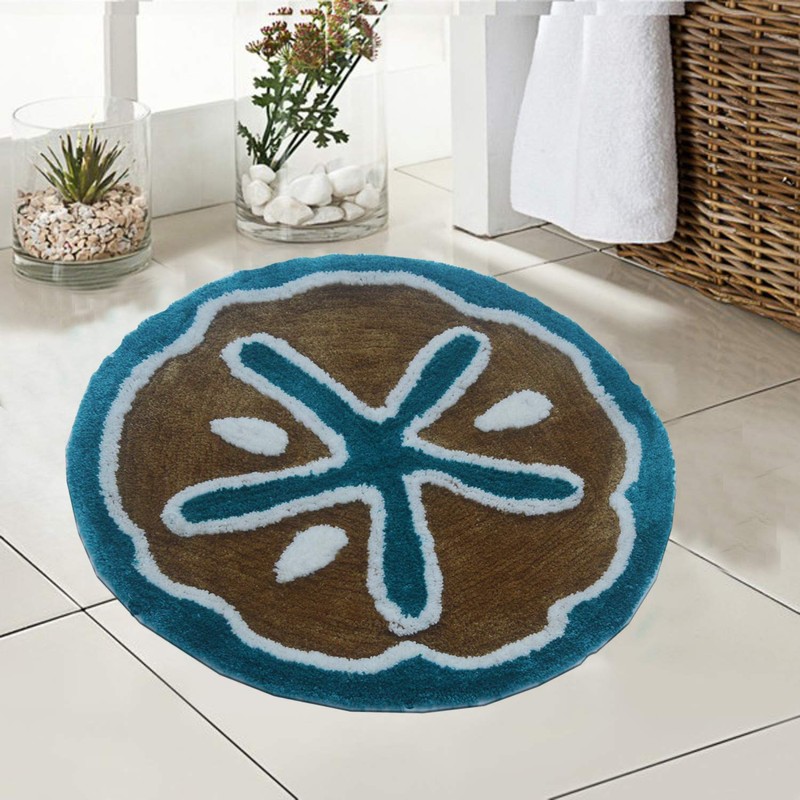 Chardin Home Soft Microfiber Polyester Spa Mat, Plush Water Absorbent Accent Rug for Bathroom Vanity, Bathtub/Shower – Starfish Design – Size: 27” Round, Machine Washable – Dk. Turquoise/Mocha Beige.