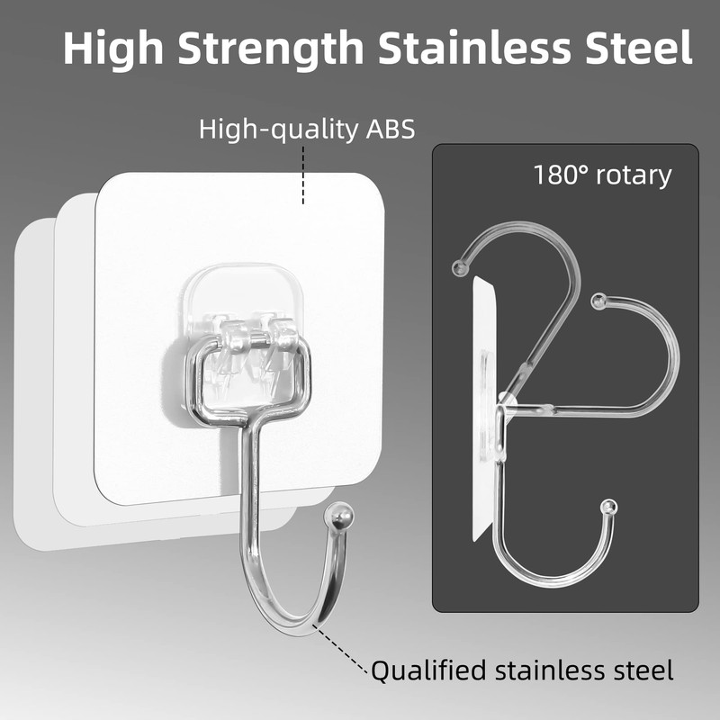 - Gebrauchshaken: Unsere klebehaken transparent ein transparentes Design, fast unsichtbar, sehr geeignet fr sch?ne Heimtextilien. Das Hakenteil aus Edelstahl l?sst sich platzsparend um 180 drehen. Mit guter Wasserbest?ndigkeit kann es weit verbreitet in W?nden, Kchen, Wohnzimmern, Badezimmern, Schr?nken und anderen Orten verwendet werden.