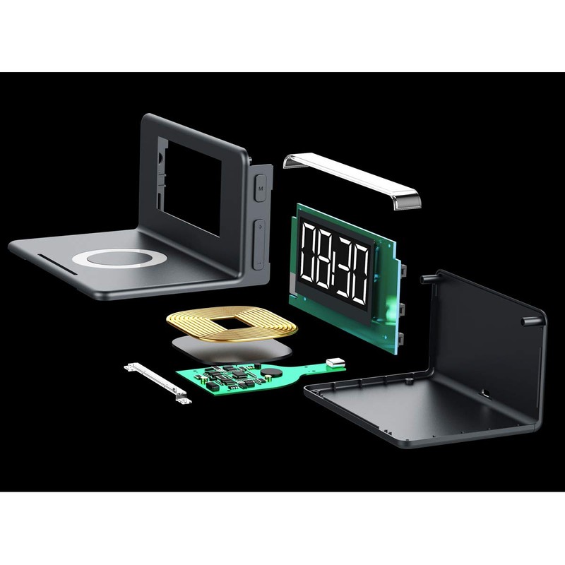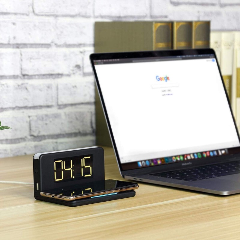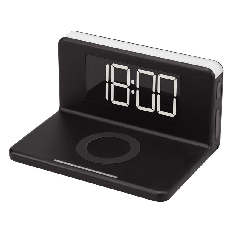 Charger Clock, Wireless Charging, 1 USB Output, Alarm Clock, Night Light, Table Clock, Smartphone Charging (Black)
