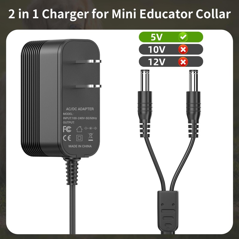 - Input: AC 100-240V 50/60 Hz Output: DC 5V; Standard wall plug with dual lead connector, 5.9ft/1.8m long power cord for Mini Educator remote dog trainer collars