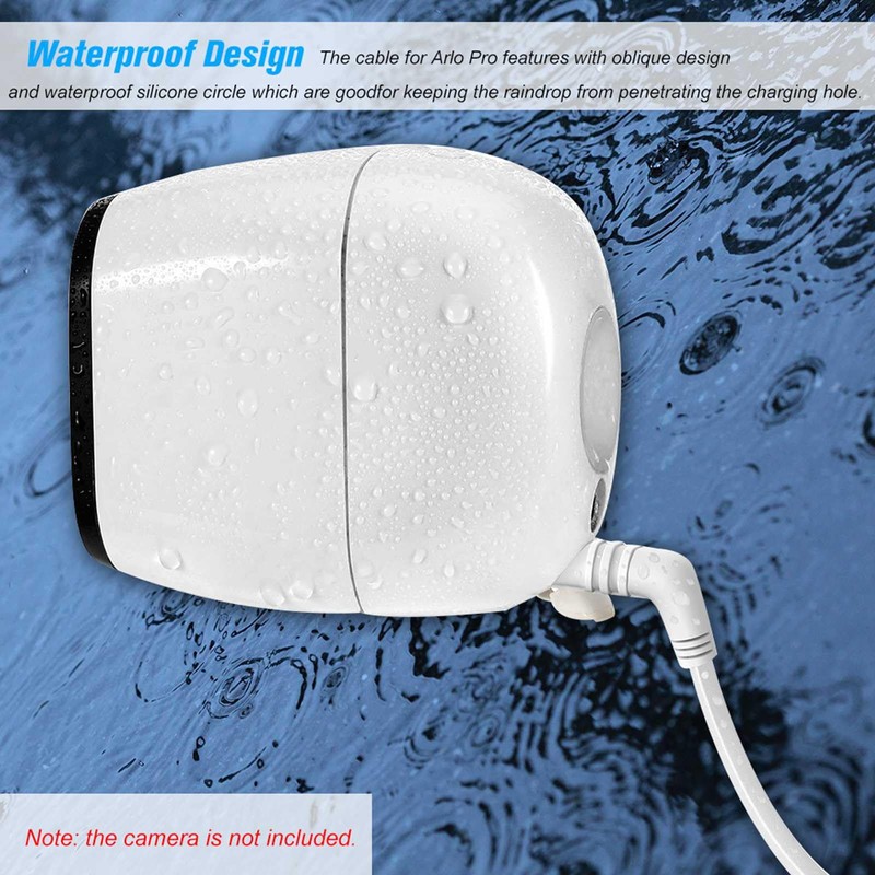 - Water proof Design: The cable for Arlo Pro features with oblique design and Water proof silicone circle which are good for keeping the raindrop from penetrating the charging hole.