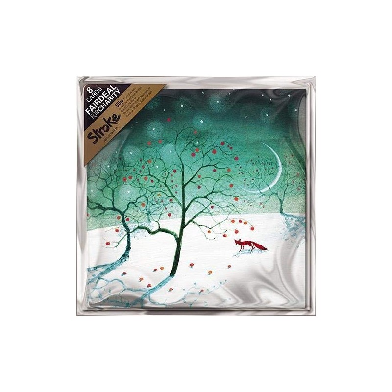 Charity Christmas Cards (ALM1345) - Apples and Fox in the Snow - Pack of 8 Cards - Sold in Aid of the Stroke Association