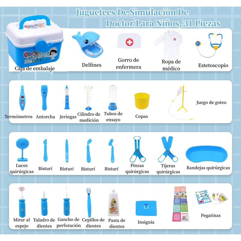 - 👨⚕️ 【El Mejor Regalo】Los juguetes de doctor son fáciles de guardar y transportar, viene con un maletín médico portátil separado que guarda muy bien todos los juguetes, muy portátil y fácil de maniobrar. ¡Juguetes perfectos para cumpleaños y fiestas importantes!