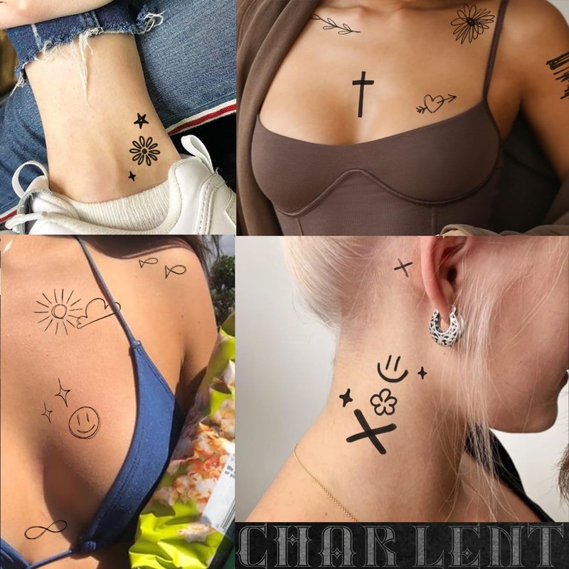 - ⚡Unique Small Street Style Temporary Tattoos for Women Men – Featuring a stylish collection of graffiti style tattoos(cross,wings,eyes,crown,heart,lightning..). These tattoos are perfect for various body placements, including face, legs, arms, and hand. Share them with family and friends for endless fun!