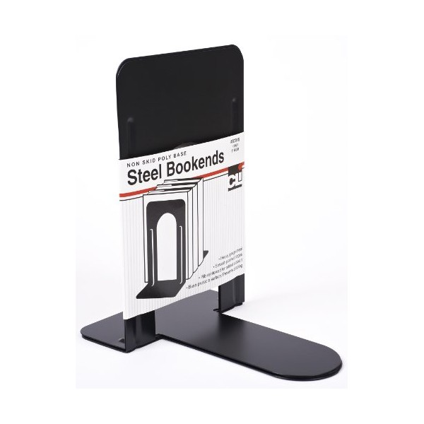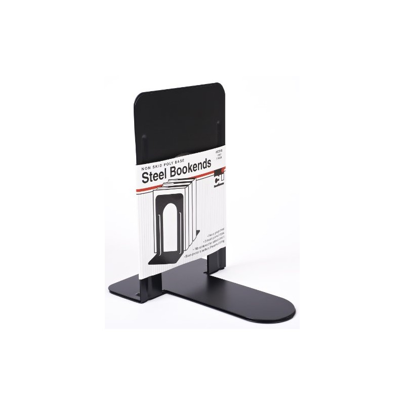 Charles Leonard Bookends, Non-Skid, 9", Steel, 2/PR, Black