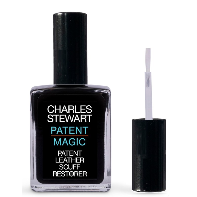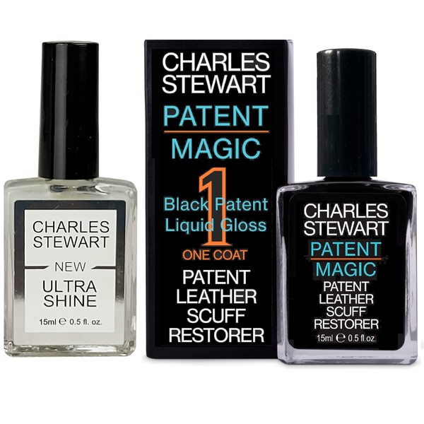 Charles Stewart Patent Magic Ultra, Patent Leather Repair Kit – One-Coat Black Scuff Cover with Gloss Top Coat, Solvent-Free, 15ml Shoe Saver