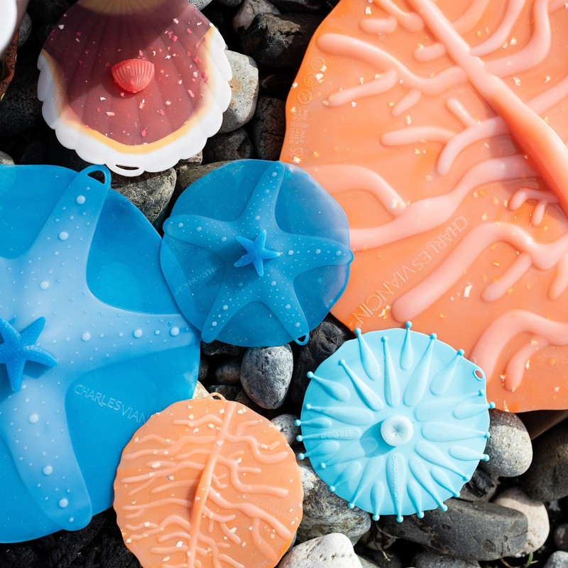 Charles Viancin - Coastal Silicone Lid for Food Storage - Costal Drink Covers - Set of 4 - One of Each - Creates an Airtight Seal on Any Smooth Rim Surface
