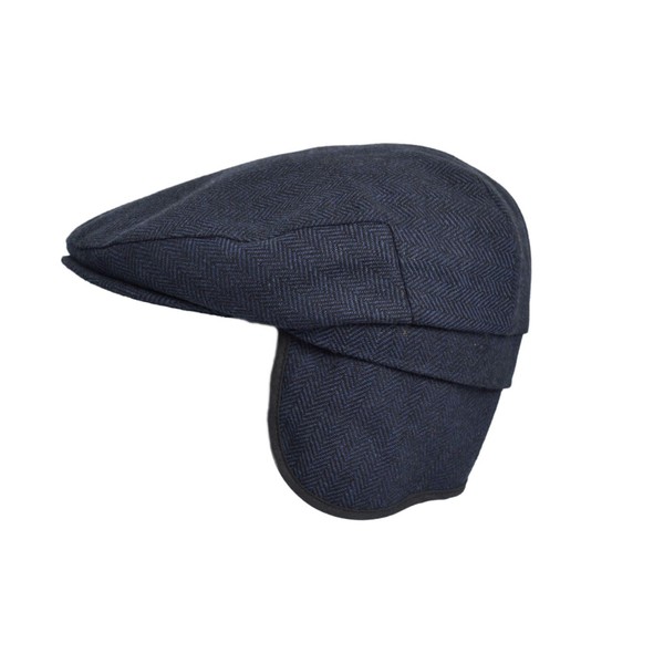 Charlton's of Northumberland - Tweed Goswick Flat Cap w/Foldable Ear Flaps - Blue Herringbone - XS (56cm)