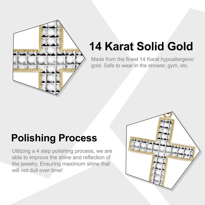 - Beautifully handcrafted Gold Cross Pendant with full solid 14 Karat gold. This makes a fantastic gift choice for any of your loved ones and friends. Guaranteed 14 Karat Solid Gold "14K" Stamp. Not Gold Plated or Filled.