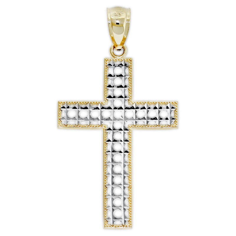 Charm America - Gold Diamond-cut Cross Pendant, 14 Karat Solid Gold