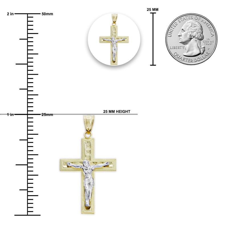 Charm America - Gold Two-Tone Classic Crucifix Charm - 10 Karat Solid Gold