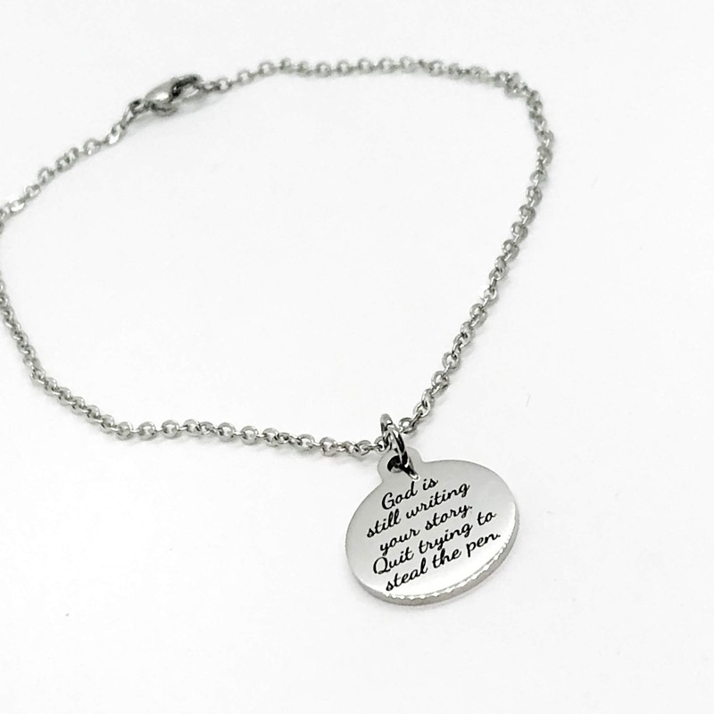 Charm Anklet, God Is Still Writing Your Story, Quit Trying To Steal The Pen Charm, Christian Anklet Gift, Stainless Charm Anklet