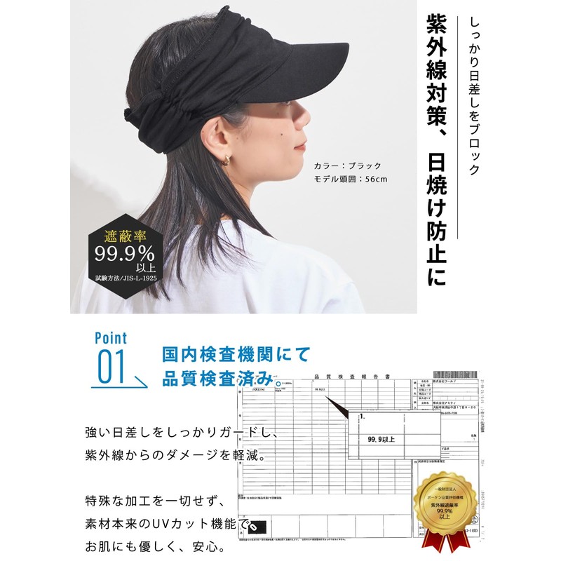 The areas covered with the fabric have a 99.9% UV reduction rate that blocks out sunlight and provides UV protection. It can also be washed after renewed. Therefore, the visor cap is made of cotton material and has excellent absorbency, so even if it gets dirty with sweat, you can wash it by hand and wash it cleanly.