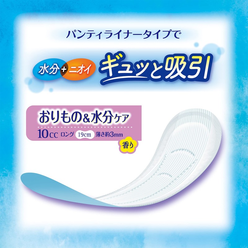 - Panty liner type absorbs moisture and odors