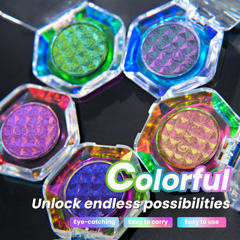 - MULTICHROME COLOR TRANSFORMATION: As the light changes, it morphs through a series of vivid hues, crafting an otherworldly, opulent, and deeply dimensional makeup look that will turn heads.