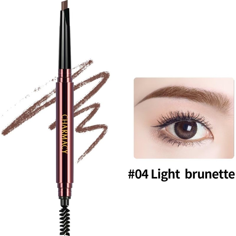 CHARMACY Triangle Eyebrow Pencil - Waterproof, Smudge-Proof, Dual-Ended with Spoolie | Vegan & Hypoallergenic | Precision Define, Fill, Shape for Beginners #04
