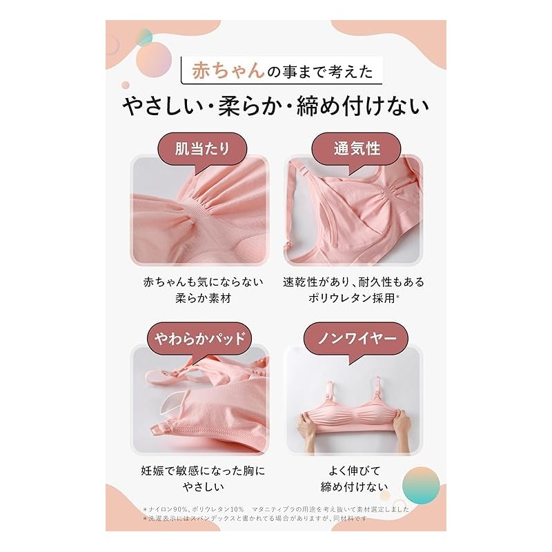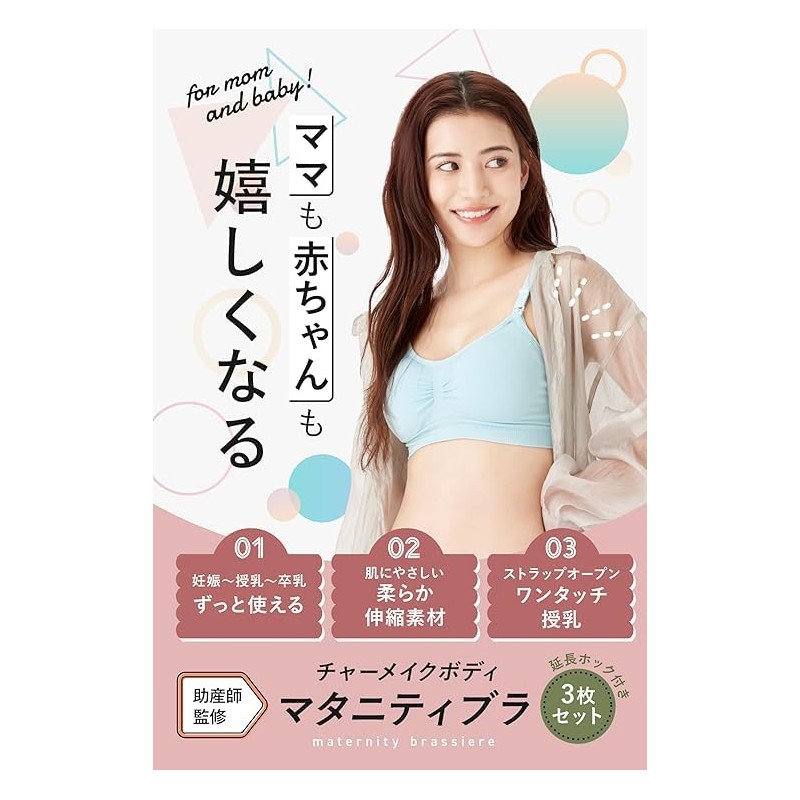 - (Mom and Baby will be delighted) This 3-piece maternity bra set is supervised by midwife team. Made with soft elastic material that is gentle on the skin and can be used for both before and after childbirth, so it is not used with laces or buttons to give your baby