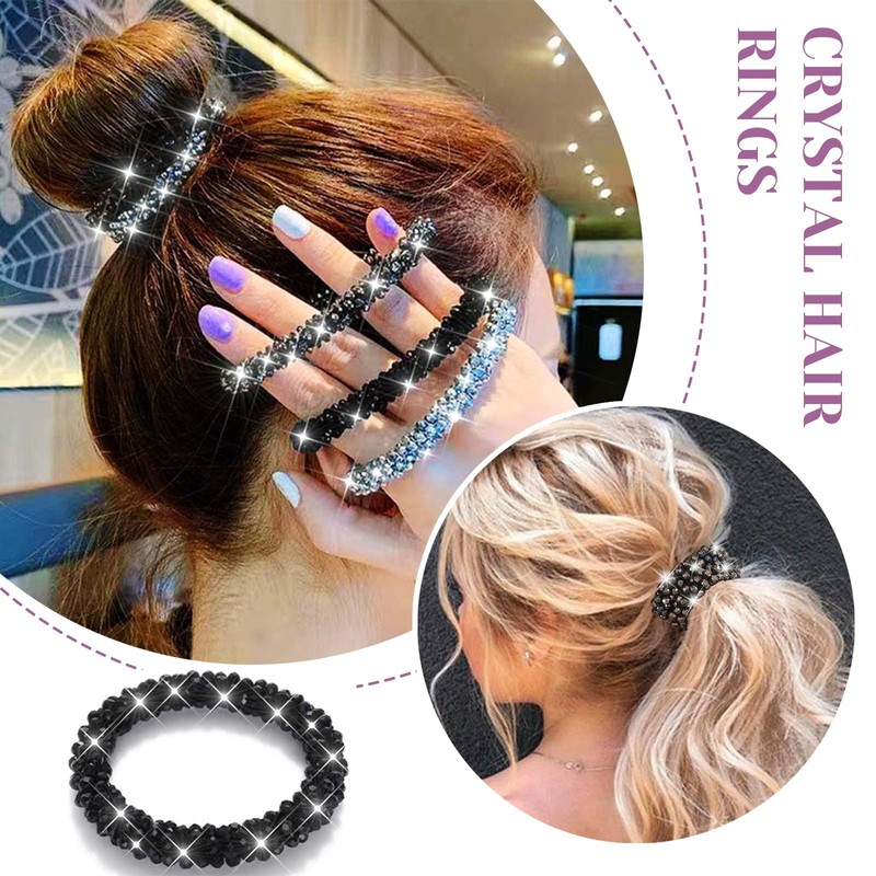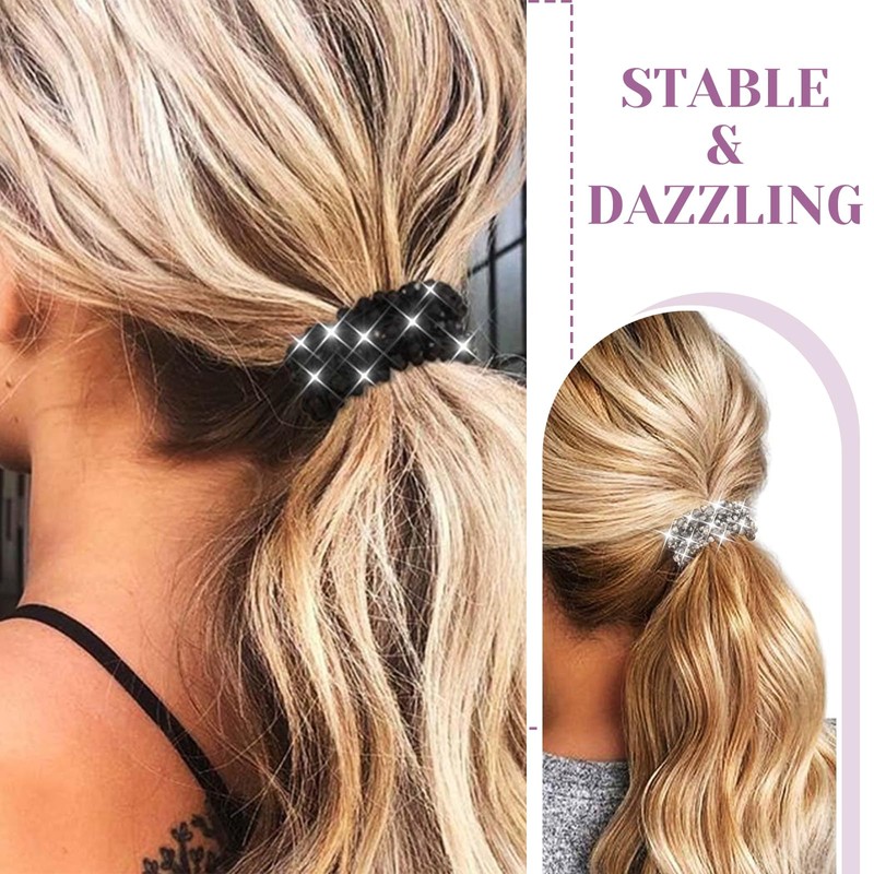 - Der Glitzer Kristall Haargummi besteht aus hoch elastischen Gummibändern und Perlen, diese Strass Haargummis sind weich, dick, dehnbar und langlebig, sodass sie nicht an Ihren empfindlichen Strähnen ziehen.