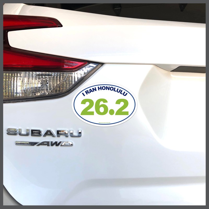 Charmed Running Brand I Ran Honolulu Marathon 26.2 Car Magnet with Custom Year Option