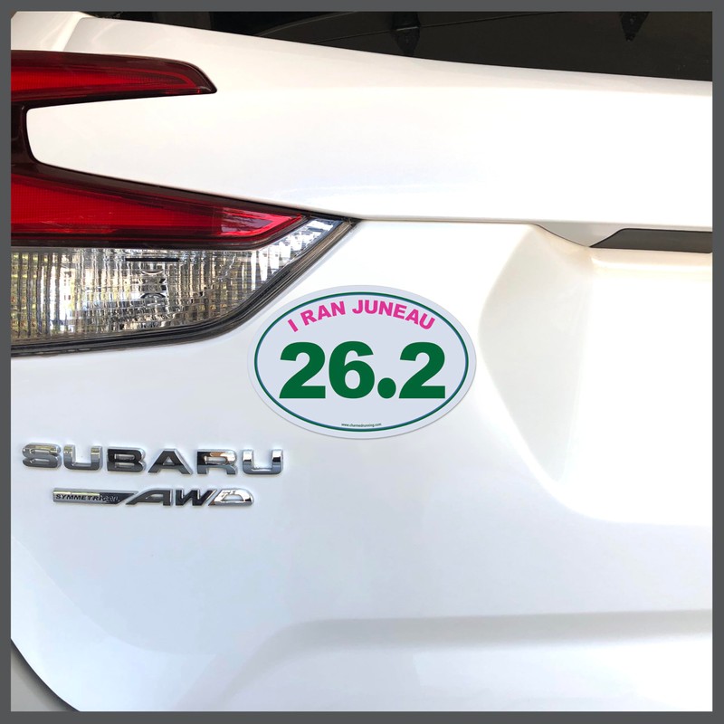 Charmed Running Brand I Ran Juneau Marathon 26.2 Car Magnet with Custom Year Option