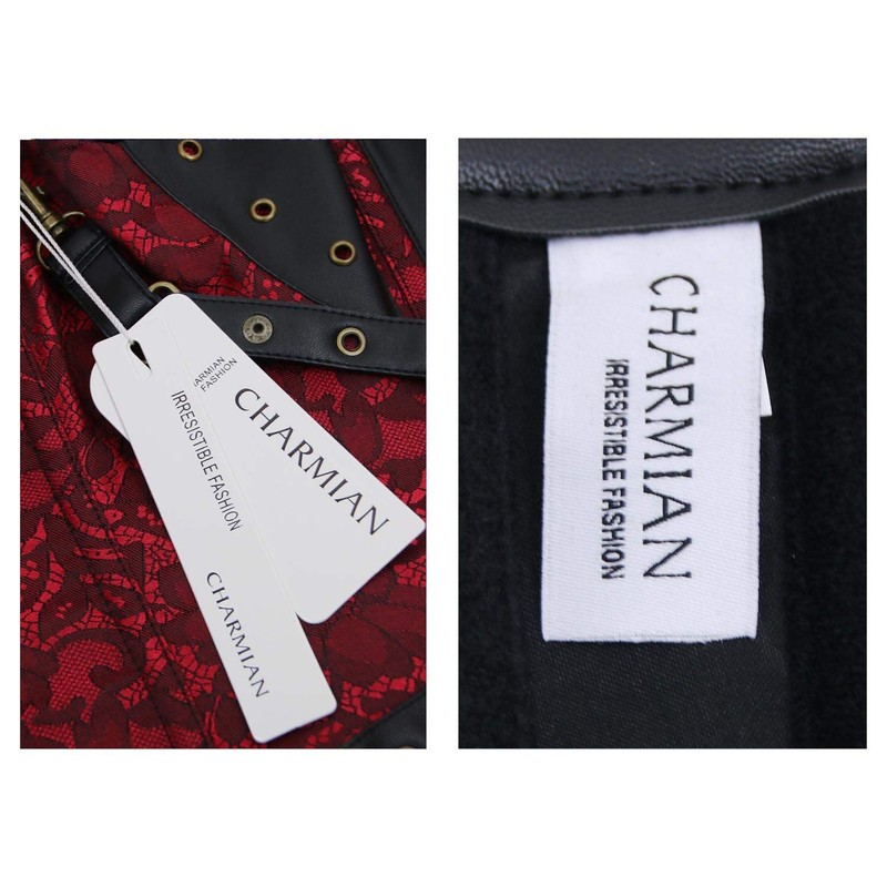 Charmian Women's Steel Boned Retro Goth Brocade Steampunk Bustiers Corset Top with Jacket and Belt Red Medium