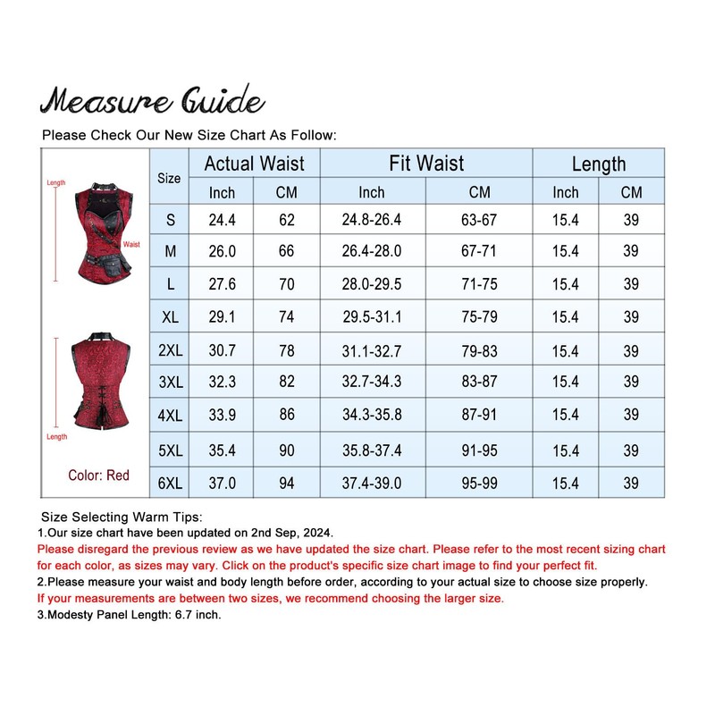 The Size Chart Above is Measured of the Corset, NOT YOUR BODY SIZE.