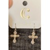 Dainty silvertone drop earrings featuring detailed crosses with a tiny bead center.