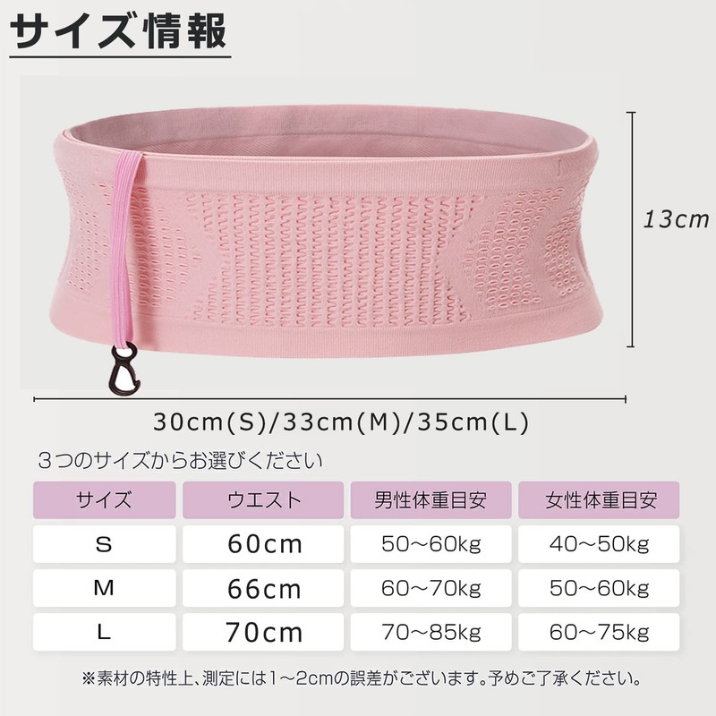 • Product Size: L size (waist circumference): Approx. 13.3 inches (33.7 cm), Weight: 2.8 oz (80 g). Size S (waist circumference): Approx. 13.3 inches (33.7 cm), Weight: 1.8 oz (50 Size M (waist circumference): Approx. 11.0 inches (28 cm), Weight: 2.5 oz (7A running pouch that is suitable for everyday running, athletic meets, commuting to work or school, marathons
