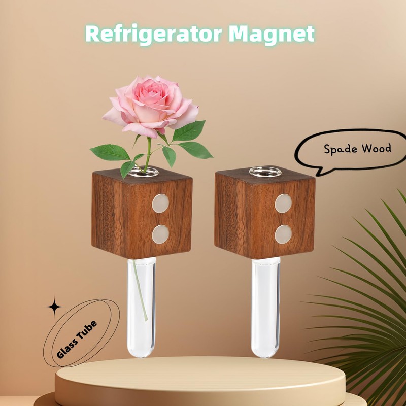 Charming Fridge Magnets, Decorative Funny Test Tube Vases Refrigerator Magnets, Cute Magnetic Mini Vase on frigerators (Spade Wood)