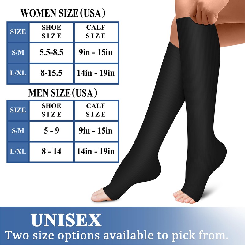 CHARMKING 3 Pairs Open Toe Compression Socks for Women & Men Circulation 15-20 mmHg is Best for All Day Wear Running Nurse (01 Balck/Black/Black, L/XL)