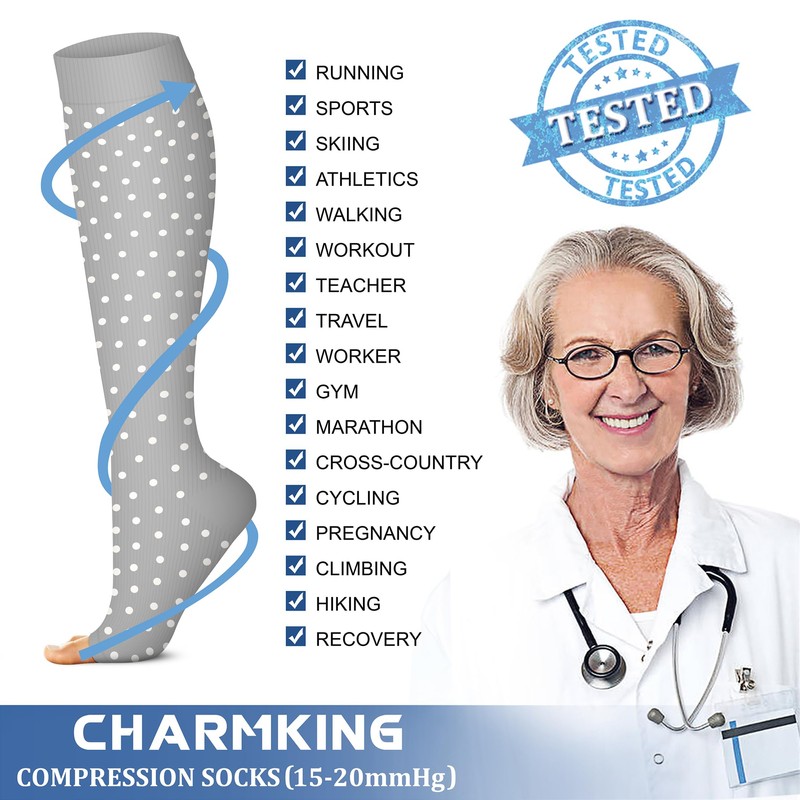 - COMPRESSION SOCKS - We intend combining fashion, technology and science to bring you the triple comfort without. The material of our compression socks are upgraded with nylon percentage from 40% to 85%. Delivers 360-degree stretch for greater flexibility and durability. Breathable high performance fabric keeps an optimal temperature.
