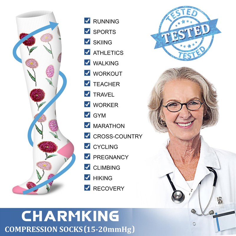- SUPPORT - Our compression socks (15-20 mmHg) come highly recommended by trainers. They are suitable for athletes, teachers, flight crew, receptionists, office workers, nurturing mothers, and the elderly. These socks are universally suitable for all types of work.