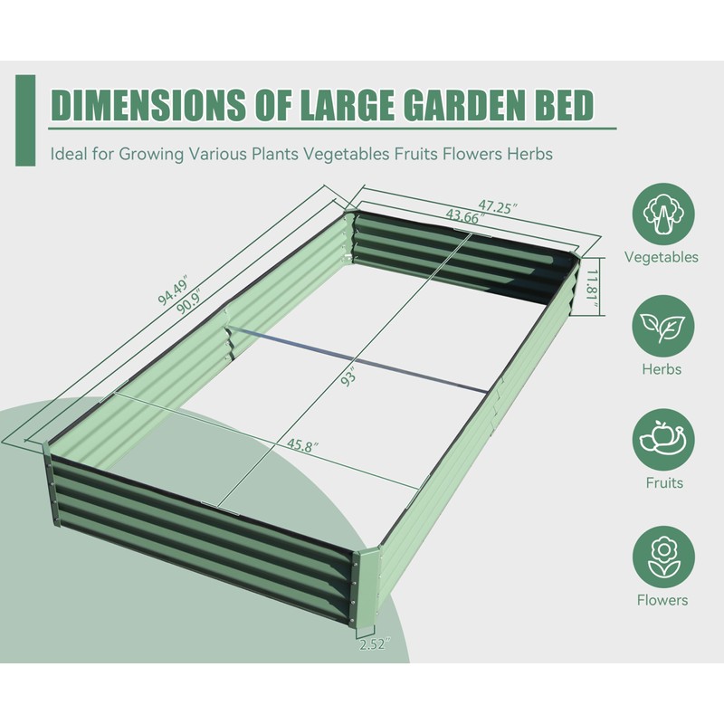 CHARMMA 8x4x1 ft Galvanized Raised Garden Bed, Outdoor Planter Garden Boxes Large Metal Planter Box for Gardening Vegetables Fruits Flowers,Green