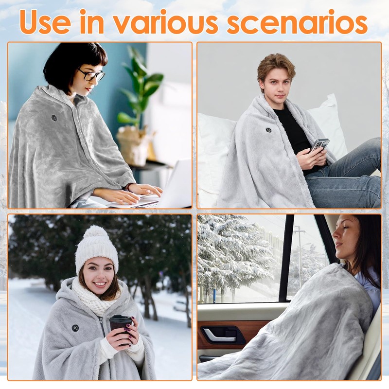 - 【Practical & Gift Idea】: A warm and cuddly portable electric blanket is the perfect gift for cold winter days. This USB electric blanket is the perfect gift for family and friends for Christmas, Thanksgiving, birthdays and anniversaries. Whether used as a blanket or heated - it provides comfort for sleeping or relaxing.