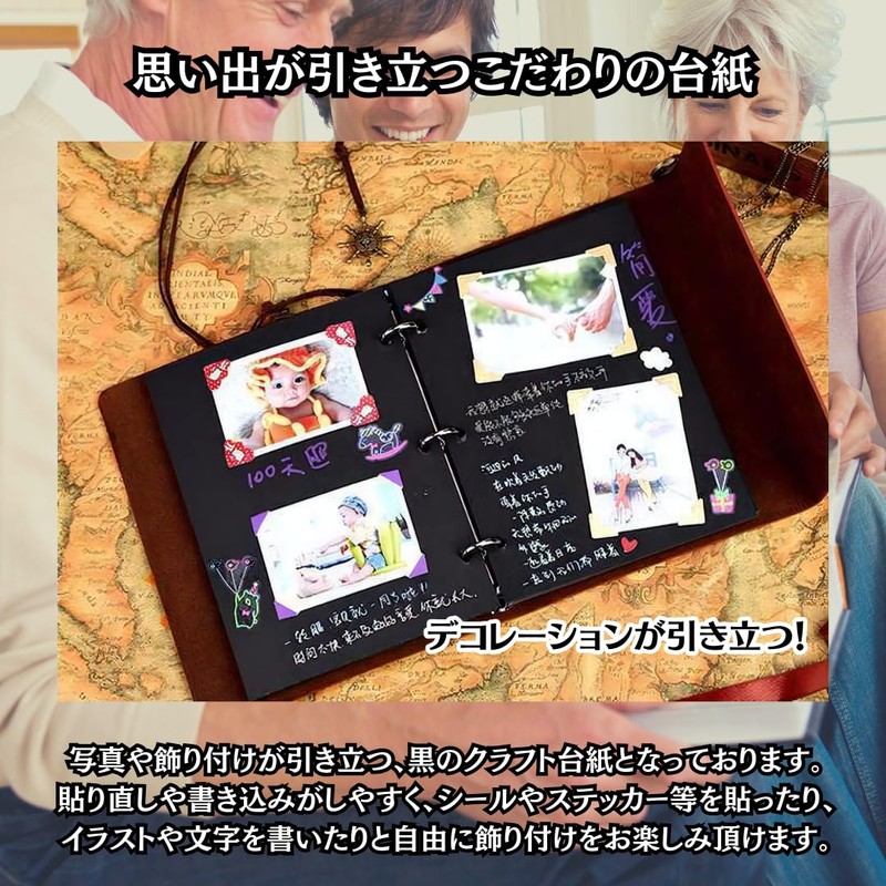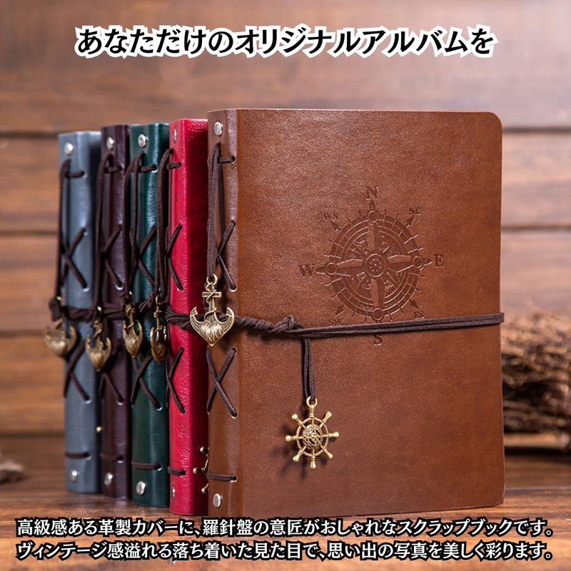 - (You can create your own original album! This scrapbook has a compass design on the leather cover. You can stick different size photos anywhere you want to create your own DIY album. It is a great way to save important memories in your daily life