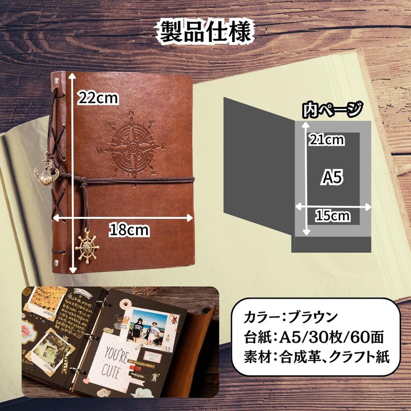- Product Specifications: Size: Length 8.7 inches (22 cm), Width 7.1 inches (18 cm), Mount: A5/30 sheets/60 sides; Material: Synthetic leather, Kraft paper