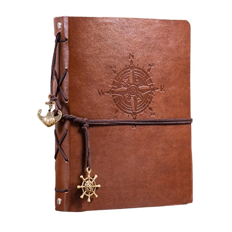 Charmoon Album Handmade Scrapbooking Photo Loose Leaf Black Mat Leather Cover Compass Nautical A5 30 Sheets 60 Pages (Brown)
