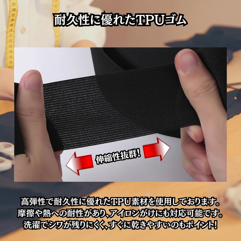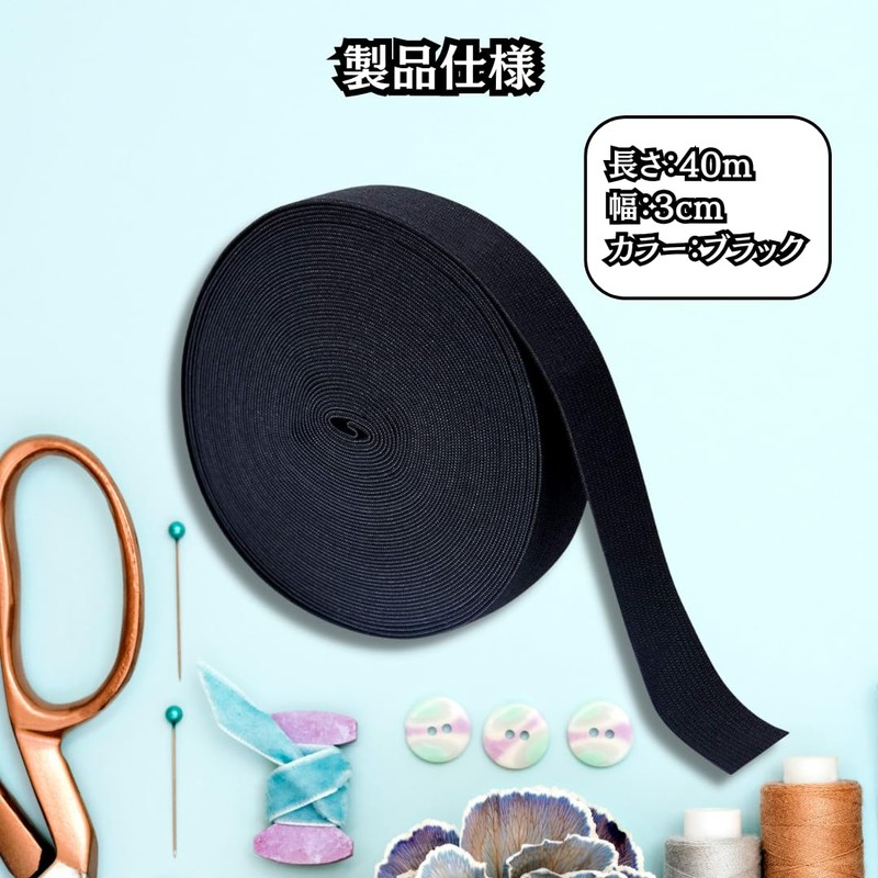 Excellent cost performance. Value 13.4 ft (40 m)) This versatile flat elastic cord is made of high-quality material. You can cut it to your desired size with scissors. With a large capacity of 132.8 ft (40 m) in length, you can use it with plenty of room without worrying about the amount of use or cutting mistakes. Useful for a variety of purposes, such as arts and rubber replacements for garments. 【Durable TPU Rubber】Made of high elasticity and durable TPU rubber, it is easy to use and resistant to abrasion. Can be ironed as it can withstand heat. In addition, since it is highly moisture-resistant, it doesn't leave wrinkles when washed, and it dries quickly when drying. (Wide Range of Uses) With excellent elasticity, you can use it to replace the elastic waist of loose pajamas and sweatshirts, as well as for underwear, sheets, elastic bands, inside the hem and cuffs. Useful for a wide range of uses, including sewing, handicrafts, and handmade. Product Specifications: Flat rubber (132.8 ft (40 m)) Size: Length 13.8 ft (40 m) Width 1.2 inches (3 cm); Material: Polyester.